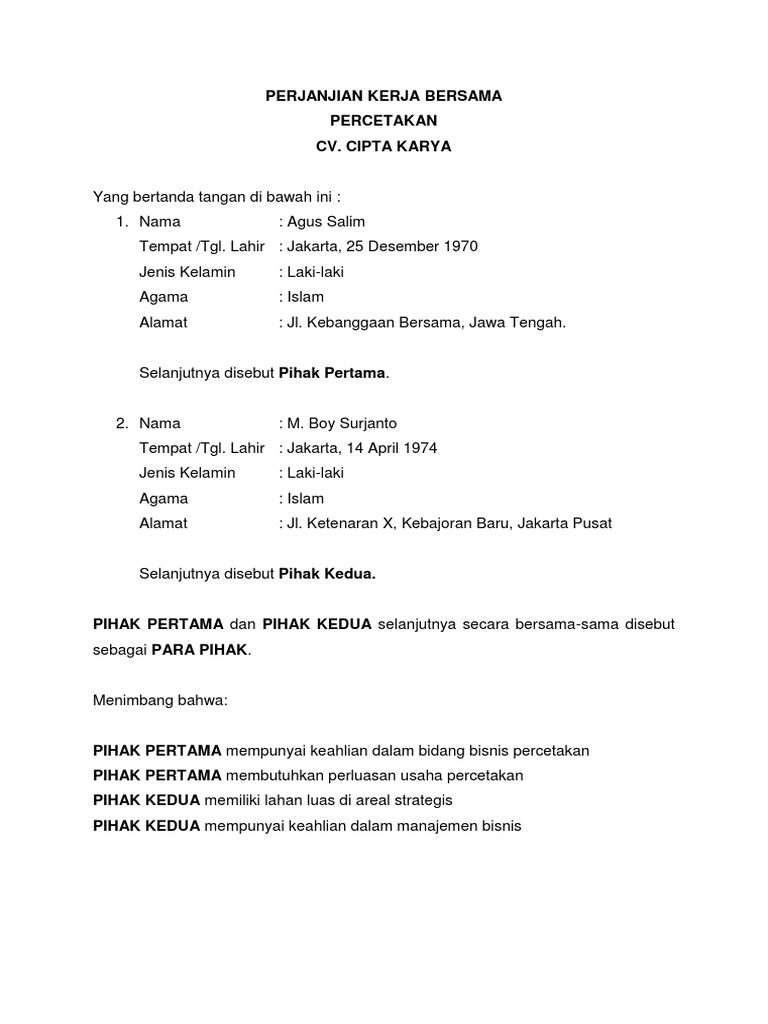 see Contra. Contoh surat perjanjian kerjasama kontrak perjanjian kerjasama antara julia dengan dr. Dalam bisnis yang paling sulit memang mengatur manusia nya pak baik itu mendapatkan trust dari user ataupun tenaga kerja yang harus bapak bangun selain dari legal formal seperti badan hukum dan surat perjanjian lebih jauh lagi adalah rasa saling percaya antar ...