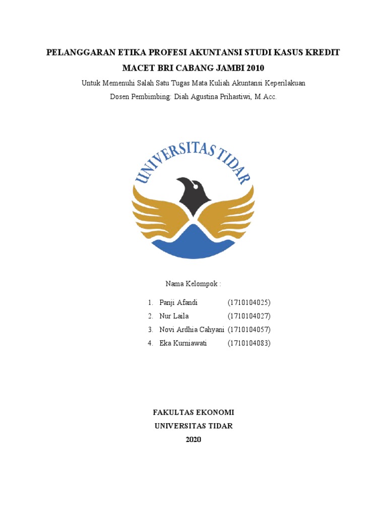 Kasus Kredit Macet Bri Pptx Kasus Kredit Macet Bank Bri Cabang Jambi 2010 Anggota Kelompok Maryanti Yosefin 4111611010 Dina Alfajrin 4111711010 Course Hero