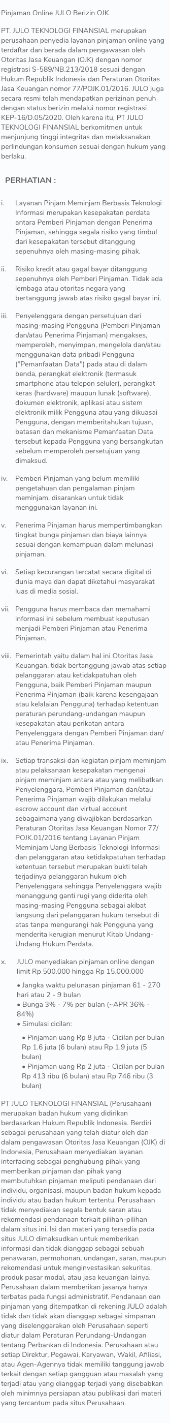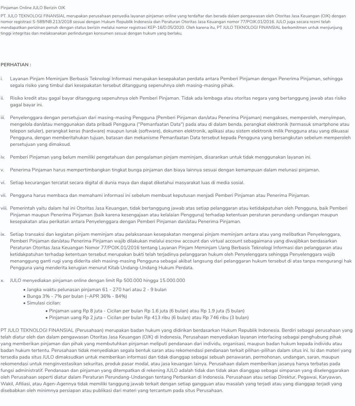Pinjaman luar negeri untuk pribadi. Jenis - Jenis Pinjaman Luar Negeri Adapun bentuk - bentuk bantuan luar negeri dapat dibedakan atas (Bank Indonesia, 2010): a. Pinjaman dengan syarat pengembalian. Pinjaman ini terdiri dari (i) Pinjaman lunak : adalah pinjaman yang masuk dalam kategori Official Development Assistance... Kapasitas untuk Membiayai Pinjaman Luar Negeri Indonesia. Pinjaman luar negeri memiliki atau menghadapi beberapa rintangan atau pembatasan. Apabila karena alasan untuk membayar jasa-jasa pinjaman luar negeri sebagai sumber kapital itu, suatu negara harus membatasi impor kapital... Mau ajukan pinjaman online tapi ragu? Tokopedia kini menyediakan layanan pinjaman online terpercaya dan dana cepat cair untuk anda. Dapatkan kemudahan dalam pinjaman uang sekarang juga! Aplikasi pinjaman online ilegal yang sudah Jaka kumpulkan kali ini bisa jadi bekal agar kamu gak tertipu. Yuk, cek daftar aplikasi pinjol ilegal berikut. Untuk itu, ada baiknya buat kamu mengetahui cara membeadakan pinjaman online legal dan ilegal yang akan Jaka bahas berikut ini.