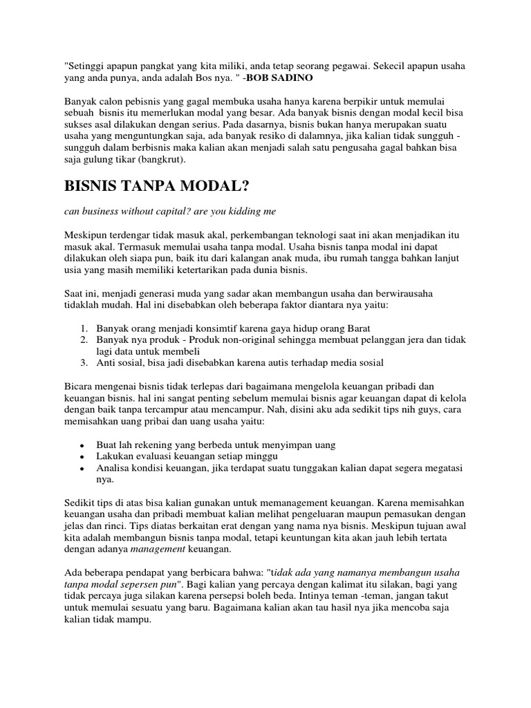 Berbagai Contoh Melakukan Bisnis Tanpa Modal Pdf