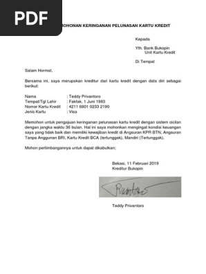 Nov 14, 2019 · Berikut informasi sepenuhnya tentang contoh surat permohonan penutupan kartu kredit. Admin blog Berbagi Contoh Surat 2019 juga mengumpulkan gambar-gambar lainnya terkait contoh surat permohonan penutupan kartu kredit dibawah ini. Demikianlah pembahasan yang dapat kami sampaikan mengenai contoh surat permohonan penutupan kartu kredit.