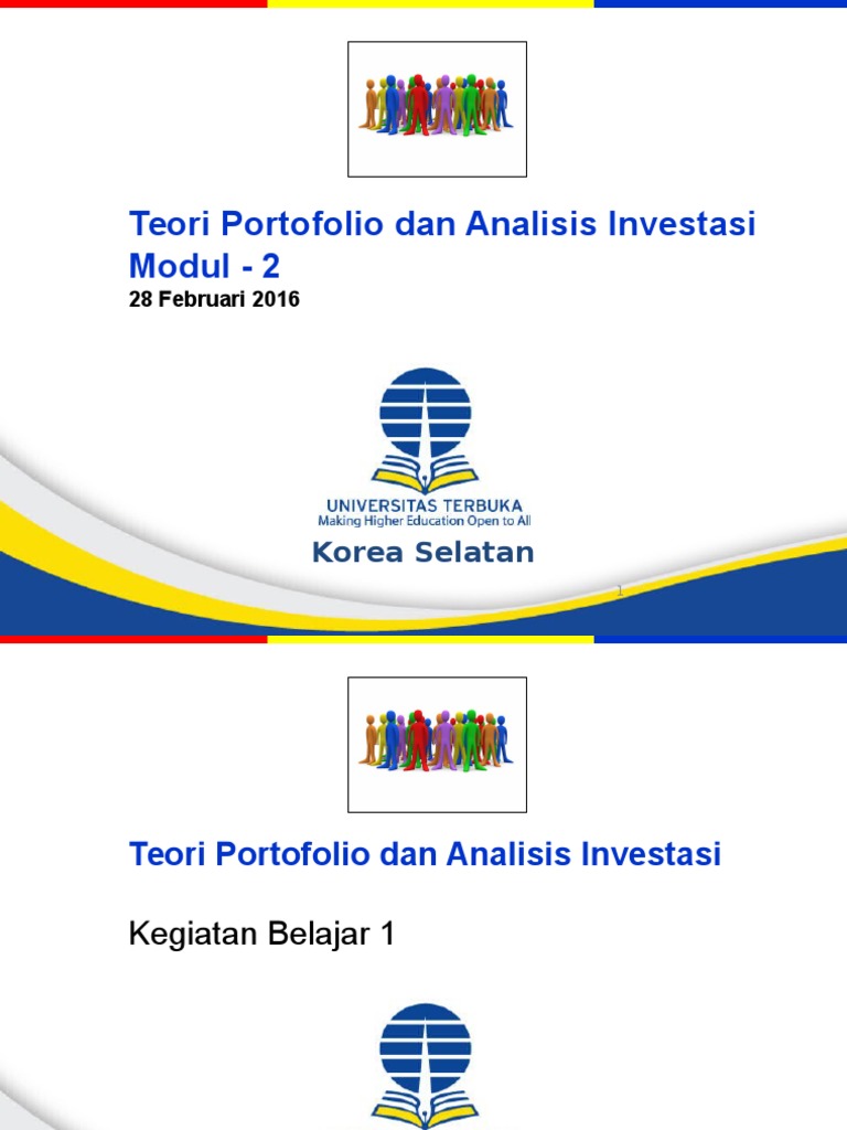 Buku Materi Pokok (BMP) EKSI4203 Teori Portofolio dan Analisis Investasi membahas pemahaman mengenai lingkungan investasinya, instrumen-instrumen investasi, dan proses pengambilan keputusan investasi. Lingkungan investasi yang akan dibahas adalah pasar modal ketika aset keuangan dapat dijual dan dibeli baik secara umum dan secara online.
