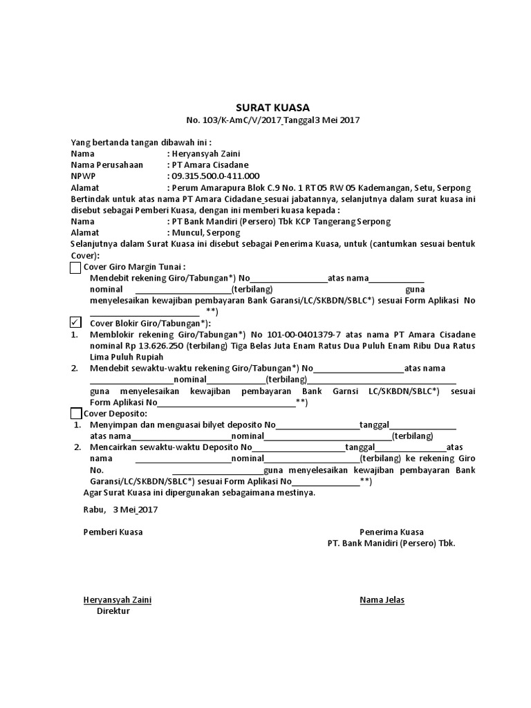 Yuk simak contoh surat permohonan rekening koran bank mandiri. Contoh surat permohonan rekening koran ke bank mandiri dapatkan contoh. surat permohonan rekening koran. contoh surat kuasa bank mandiri surat surat kuasa uang Pelajari juga soal permohonan serta baca lagi materi contoh surat permohonan rekening koran bank mandiri . 7 Contoh Surat Kuasa Bank Untuk Pengambilan Uang Yang Benar