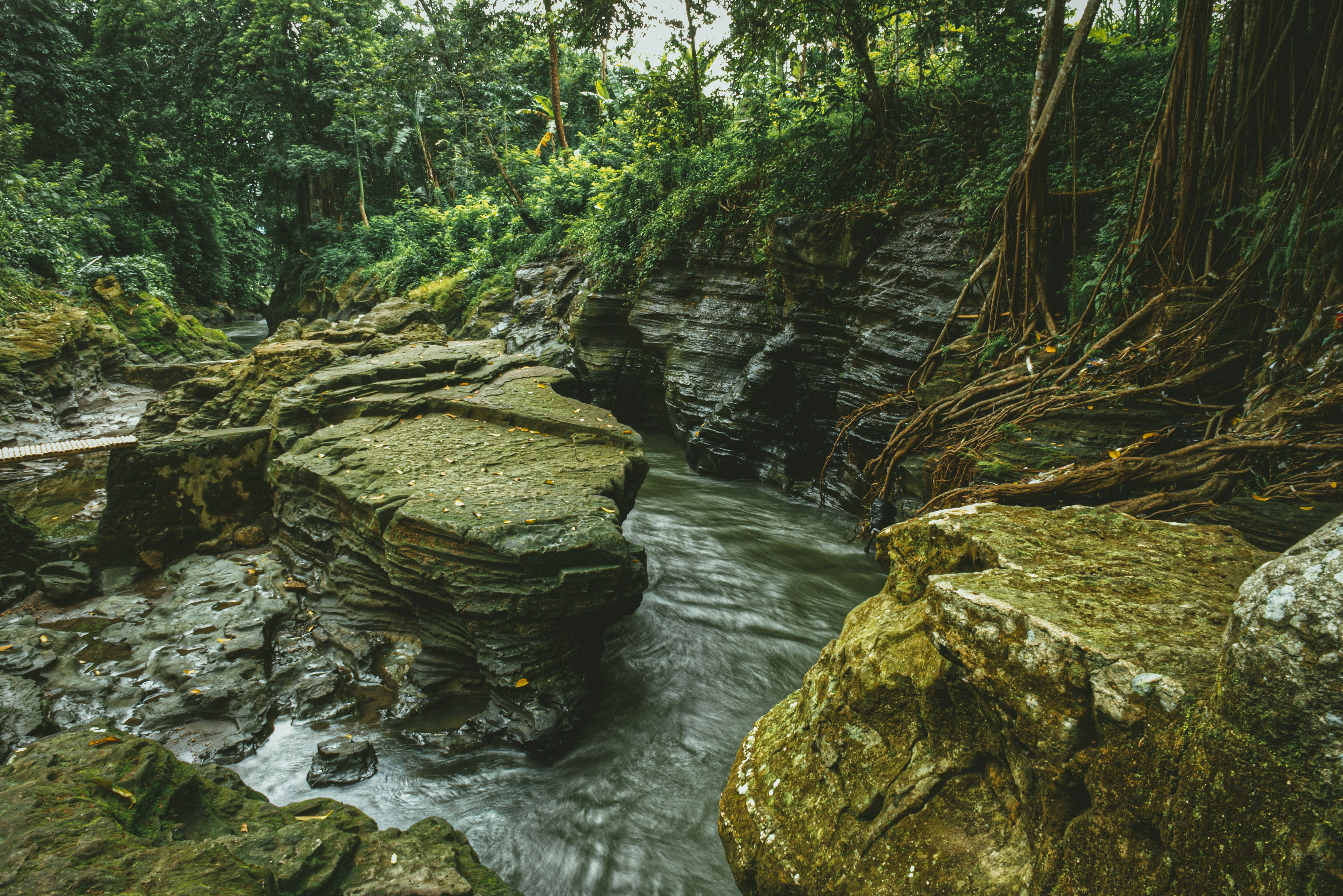 Beautiful and natural river view of the Opak river at Batu Kapal, Yogyakarta, Indonesia.