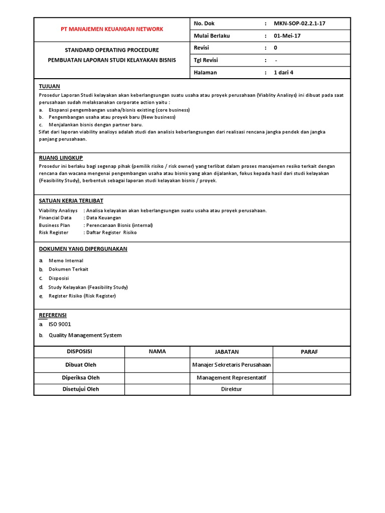 SOP Laporan Studi Kelayakan Usaha - PDF