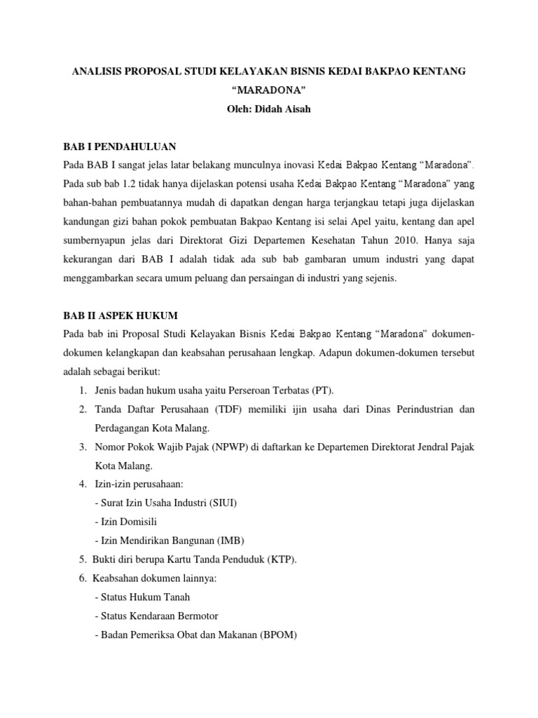 Contoh Proposal Studi Kelayakan Bisnis Makanan Pdf ...