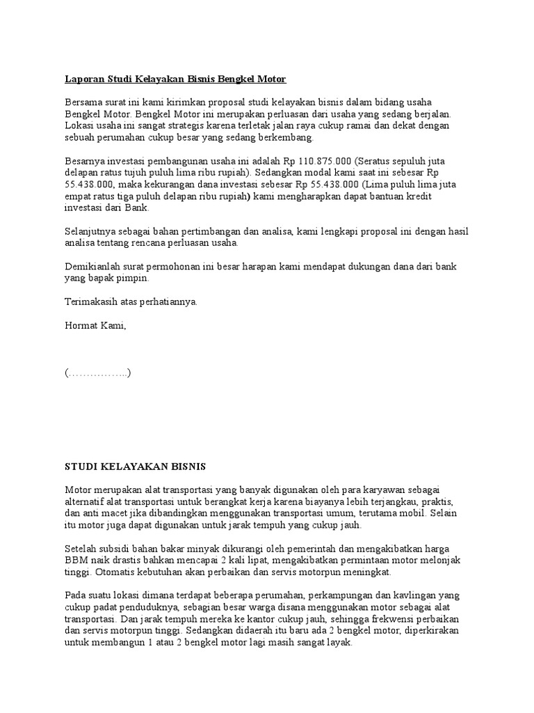 Laporan Studi Kelayakan Bisnis Bengkel Motor | PDF