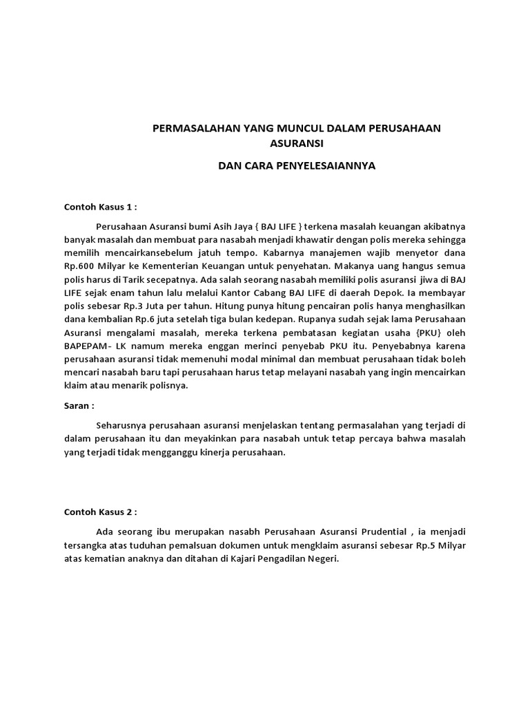 41 Contoh Kasus Asuransi Dan Penyelesaiannya