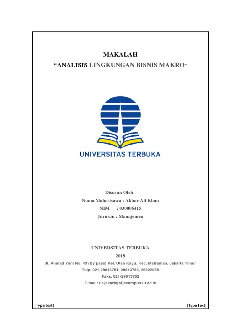 (PDF) ANALISIS LINGKUNGAN BISNIS MAKRO - Academia.edu ANALISIS LINGKUNGAN BISNIS MAKRO Makalah Untuk memenuhi tugas individu mata kuliah Manajemen Strategik Oleh Hairum Rijal 031075333 Jurusan Manajemen Fakultas Ekonomi & Bisnis UPBJJ-Universitas Terbuka Kendari 2018 KATA PENGANTAR Bimillahhirrohmannirrohim.