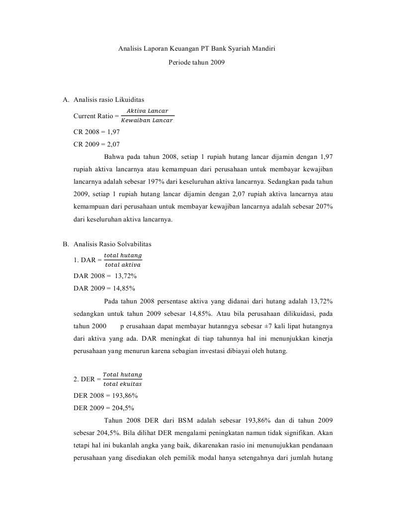 Laporan keuangan publikasi bank syariah mandiri 2009 Laporan Keuangan Publikasi Bulanan Neraca PT BANK SYARIAH MANDIRI GD. Bank syariah mandiri, jl. MH.THAMRIN NO.5, JKT Telp. (021) 2300509 per Maret 2009 (Dalam Jutaan Rupiah) Pos-pos Bank 03-2009 KOMITMEN Tagihan Komitmen Fasilitas Pembiayaan Yang diterima dan... Contoh Laporan Keuangan Bank Syariah Terbaru | Biblibio.xyz Saya ambil contoh laporan keuangan PT Bank Syariah Mandiri yang telah diaudit oleh Kantor Akuntan Publik (KAP) Purwanto, Suherman dan Untuk laba usaha yang diperoleh Bank Syariah Mandiri juga menunjukan peningkatan yang baik dimana perolehan laba usaha ditahun 2012 adalah... (PDF) perbandingan kinerja keuangan antara bank... 1,- dari laporan keuangan Bank Mandiri pada pendapatan yang diterima memerlukan biaya tahun 2008 menunjukkan angka 2 %, hal yang telah Keuangan antara Bank Syariah ditetapkan cukup baik, dimana rasio CAR kedua Mandiri dan Bank Mandiri bank tersebut di atas 8%. Nilai CAR pada...