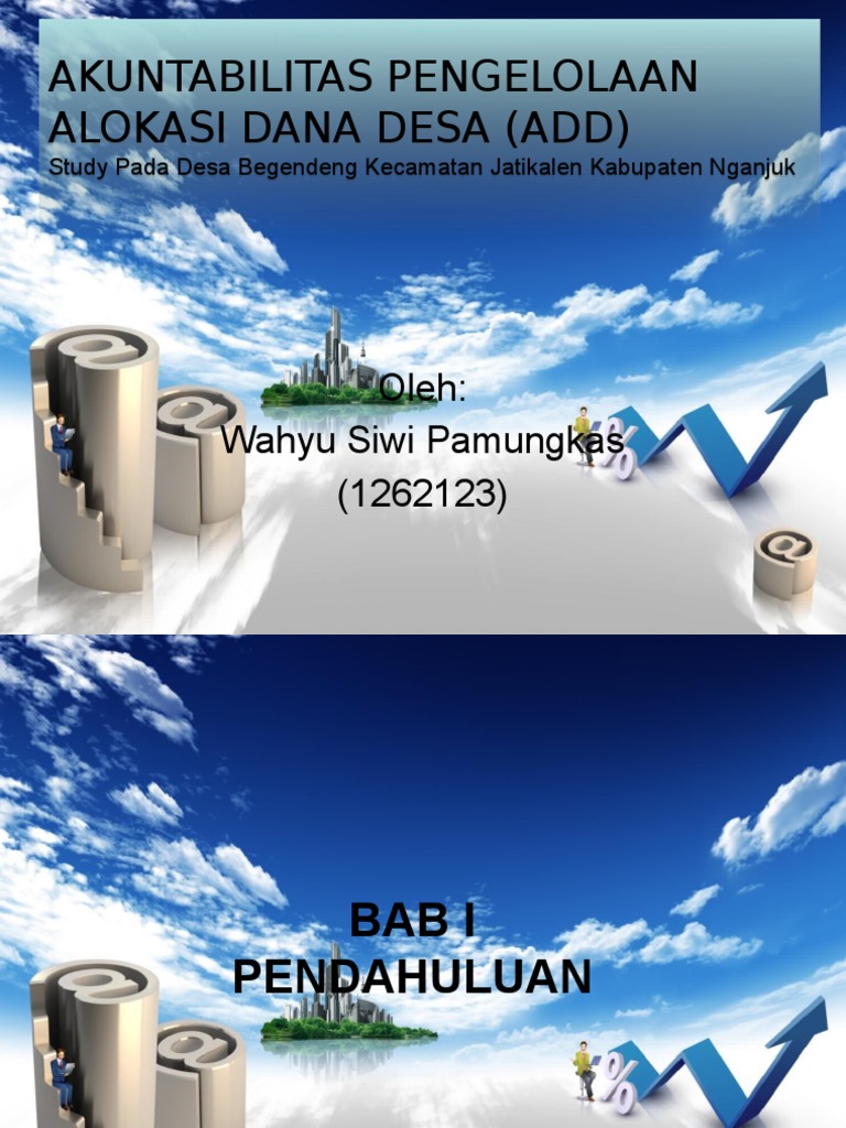 Pengesahan judul skripsi. Akuntabilitas pengelolaan alokasi dana desa (ADD) DI desa - desa kecamatan rogojampi kabupaten banyuwangi. Alokasi Dana Desa merupakan salah satu dana yang bersumber dari dana perimbangan pusat dan daerah.