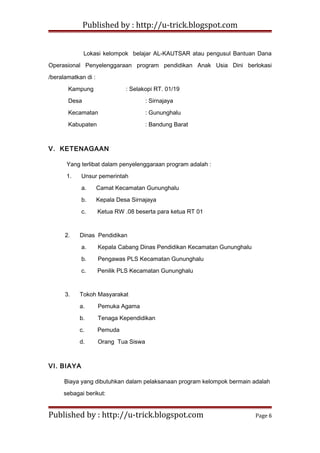 (Doc) Contoh Proposal Bantuan Dana Pendidikan Proposal ... Minggu, 06 Oktober 2013 CONTOH PROPOSAL BANTUAN DANA PENDIDIKAN PROPOSAL BANTUAN DANA PENDIDIKAN MAHASISWA SEKOLAH TINGGI AGAMA ISLAM (STAI) YPI AL-IKHLAS PAINAN OLEH : NAMA : YENI SUSANTI BP/NIM : 101012077/S.1.VI.12.10.077 JURUSAN : PENDIDKAN AGAMA ISLAM ALAMAT : SURANTIH, KEC.SUTERA.KAB.PESSEL Sekolah tinggi agama islam (stai ) Ypi al-ikhlas painan 2013 Surantih, 10 Januari 2013 Hal : Mohon ...