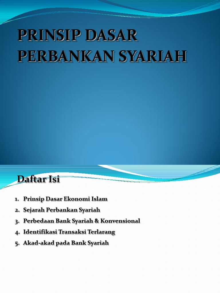 Prinsip Dasar Bank Syari'Ah PRINSIP DASAR BANK SYARI'AH Selasa, 29 Januari 2013. PRINSIP DASAR BANK SYARI'AH ( oleh Aris Triwiyono Siswa SMK N 1 Wonosari, Gunungkidul, Yogyakarta ) BAB 3 PRINSIP DASAR BANK SYARIAH. Materi bab 3 menjelaskan tentang prisip syariah yang harus diperhatikan dalam pengelolaan suatu bank syariah. Prinsip tersebut mengacu pada prinsip-prinsip ...