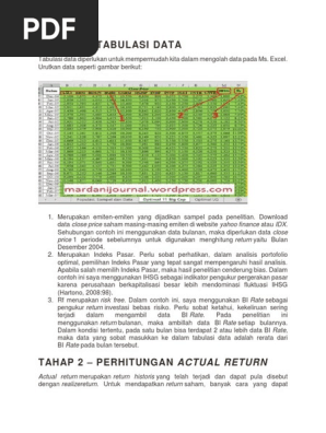 Panduan Mencari Dan Mengolah Data Return Saham (Bagian 1) Bagi investor saham kawakan, informasi harga saham sebenarnya sudah banyak tersedia. Setelah itu, data sudah siap diolah. Jika dibandingkan antara data di Excel dengan data di Yahoo Finance, ada Untuk menghitung return caranya cukup sederhana yaitu harga hari ini - harga sebelumnya...