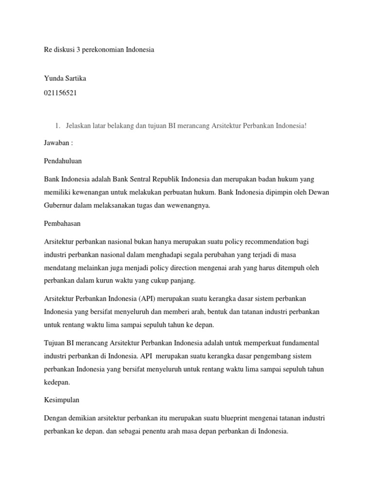 Latar belakang bank indonesia. › demokrasi-terpimpinDemokrasi Terpimpin : Sejarah, Latar Belakang dan Ekonomi Feb 20, 2022 · Demokrasi Terpimpin : Sejarah, Latar Belakang, Ekonomi,Dampak dan Tujuan adalah Demokrasi Terpimpin (1959-1965) pada Masa Orde Lama adalah sebutan bagi masa pemerintahan Presiden Soekarno di Indonesia. Transformasi - Bank Indonesia Latar Belakang Mengapa Bank Indonesia Bertr ansformasi? Bank Indonesia memiliki cita-cita jangka panjang yang hendak diwujudkan atau dikenal dengan sebutan visi. Selain visi, elemen penting lainnya adalah misi. Misi menentukan batas dan maksud dari aktivitas untuk mewujudkan visinya. Sejarah Bank Indonesia - Sejarah Lengkap Sejarah Bank Indonesia. Pada tanggal 10 Oktober 1827 di wilayah Hindia Belanda (Nusantara) telah didirikan sebuah bank yang bernama De Javache Bank yang berkedudukan di Batavia (sekarang Jakarta), bank tersebut didirikan oleh pemerintah Hindia Belanda. Pada awal mulanya bank tersebut bukanlah milik pemerintah, namun semua pemimpinnya diangkat ... Jelaskan latar belakang dan tujuan BI merancang Arsitektur ... 1. Jelaskan latar belakang dan tujuan BI merancang Arsitektur Perbankan Indonesia! A. Pengertian Arsitektur perbankan indonesia Bank Indonesia pada tahun 2004 mulai berusaha menerapkan Arsitektur Perbankan Indonesia. Arsitektur Perbankan Indonesia merupakan suatu kerangka dasar pengembangan sistem perbankan Indonesia yang bersifat menyeluruh untuk rentak waktu lima tahun sampai sepuluh tahun ...