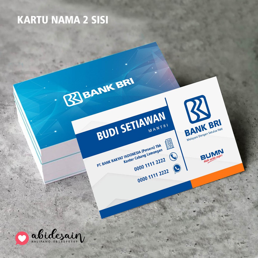 Kartu nama bank bri. Cara Transfer, Cek Saldo, Isi Pulsa SMS Banking BRI, BNI, Mandiri Berikut adalah Format SMS Banking BRI, BNI, Mandiri lengkap untuk transfer sesama Bank, ke Bank lain, Cek Saldo dan Mutasi Pembayaran listrik Kamu bisa melakkan transaksi seperti transfer antar BRI atau ke Bank lain, Pembayaran Tagihan PLN, Telkom, Kartu kredit, Asuransi, Pembelian pulsa... Cara Cek Angsuran BRI (Kartu Kredit, KPR) 8 Metode Lengkap Bank BRI bisa jadi pilihan, dari deretan bank yang ada di Indonesia. BRI salah satu bank yang layak menjadi tempat mengajukan pinjaman. Masukan kartu ATM ke mesin, lalu masukan PIN secara benar. Klik menu pembayaran. Pilih menu kartu kredit. Nama Bank BRI. Kartu Kredit BRI | Mafiakartukredit.com | Contoh kartu kredit Bank BRI Sebab nama bank ini dulunya adalah: De Poerwokertosche Hulp en Spaarbank der Inlandsche Hoofden. Keterangan lebih lanjut mengenai kartu kredit BRI, Anda bisa langsung menghubungi alamat atau nomor telepon Bank BRI seperti tertera di bawah ini. Cara cetak nama dan foto pribadi pada kartu ATM BRI Kartu-kartu ini berarti dapat digunakan di ATM dan mesin EDC bank asing di luar negeri. Namun, dikenakan biaya (fee) transaksi lebih mahal. Dari nama sudah bisa ditebak kartu debit ini untuk tabungan BRI jenis apa. Sama sepeti buktab-nya, permukaan depan kartunya juga abu-abu.