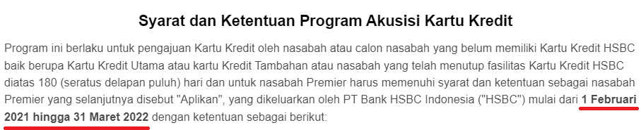 Apply Kartu Kredit Online | HSBC Indonesia Penurunan suku bunga kartu kredit HSBC. Dalam rangka mendukung kebijakan Bank Indonesia yang disampaikan melalui Siaran Pers No. 23/129/DKom per tanggal 25 Mei 2021 mengenai transmisi kebijakan suku bunga dan efisiensi transaksi non tunai, maka efektif 1 Juli 2021, PT Bank HSBC Indonesia menurunkan batas maksimum suku bunga Kartu Kredit dari 2% ... Apply Kartu Kredit HSBC: Syarat / Pengajuan online / Jenis ... Cara membuat kartu kredit HSBC online dilakukan melalui website hsbc.co.id maupun situs partner HSBC lainnya. Anda tidak perlu berlama-lama mengantri di bank, tapi cukup mengisi formulir registrasi secara online. Sebelum apply kartu kredit HSBC, pelajari dulu : Jenis dan Limit Kartu Kredit HSBC Biaya Kartu Kredit HSBC Kartu Kredit HSBC Terbaik Pengalaman Mendaftar Kartu Kredit HSBC Via Pilihkartu ... Pengalaman Mendaftar Kartu Kredit HSBC Via Pilihkartu. Gregy, seorang karyawan swasta di Jakarta menceritakan pengalamannya dengan apply online kartu kredit HSBC di Pilihkartu, yuk kita dengar ceritanya! "Waktu itu seorang teman kantor saya tiba-tiba ngechat dan kasih tau link buat daftar kartu kredit HSBC. Diperpanjang: Welcome Bonus Kartu Kredit HSBC Hingga 31 ... Pertimbangannya seperti ini: Proses pengajuan kartu kredit HSBC Visa Signature dari awal apply sampai dengan dapat pemberitahuan diterima/ditolak memakan waktu 1 - 1,5 bulan dan itupun tidak ada jaminan kartu kredit itu disetujui/diterima. Jika ditolak, maka Anda akan membuang waktu 1 bulan katakanlah.