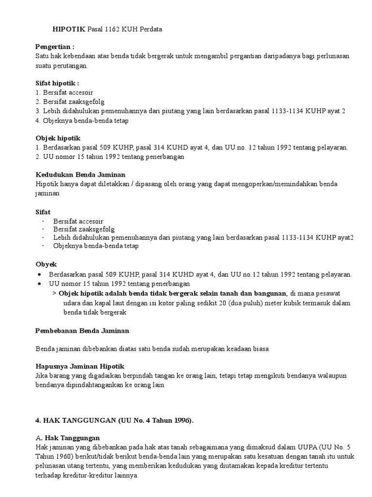 Jelaskan perbedaan antara hak, tanggungan, gadai, dan fidusia! (gadai): hak yang diperoleh kreditur dari debitur atau orang lain atas nama debitur dalam harta pribadi. Hak ini memberikan kuasa kepada kreditur untuk menerima pengembalian harta dan berhak untuk mengalahkan kreditur lainnya. (fidusia) - pengalihan hak atas dasar kepercayaan dan benda tetap di tangan debitur (pemilik benda) Was this helpful? 0 / 0 Perbedaan gadai, fidusia, hipotik, hak tanggungan ... Perbedaan gadai, fidusia, hipotik, hak tanggungan. Gadai adalah suatu hak yang diperoleh kreditor (si berpiutang) atas suatu barang bergerak, yang diserahkan kepadanya oleh debitur (si berutang), atau oleh seorang lain atas namanya, dan yang memberikan kekuasaan kepada kreditor itu untuk mengambil pelunasan dari barang tersebut secara ... HT VS FIDUSIA - Bang Zali Perbedaan antara Undang-Undang Jaminan Fidusia dengan Undang-Undang Hak Tanggungan adalah terletak pada unsur janji, yang mana dalam Undang-Undang Hak Tanggungan pelaksaan parate eksekusi itu harus dicantumkan secara jelas dan tegas mengenai janji yang berkenaan dengan pelaksanaan parate eksesusi apabila debitor cidera janji, dia tidak berdiri ... PERBEDAAN gadai fidusia dan hak tanggungan.docx ... - Bersifat mendahulu (droit de preference) yaitu penerima gadai mempunyai hak diatas kreditur lain atas piutangnya - Jaminan gadai memilikikekuatan eksekutorial. - Fidusia merupakan perjanjian tambahan atas adanya perjanjian pokok - Bersifat individualiteit, yaitu benda yang dijadikan jaminan fidusia melekat dengan utangnya.