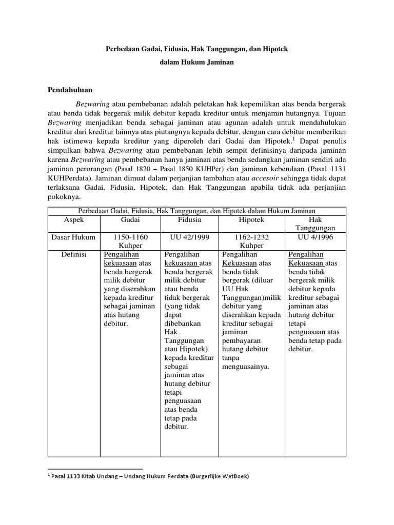 Perbedaan Gadai Fidusia Dan Hak Tanggungan 2022 Perbedaan antara gadai , fidusia , dan hipotik. Perbedaan gadai, fidusia, hipotik, hak tanggungan. Hak yang diperoleh kreditor atas suatu barang yang bergerak yang diberikan kepadanya oleh debitor atau orang lain atas namanya untuk menjamin suatu utang. Gadai ataupun fidusia dapat dilakukan apabila tidak ada ketentuan lain di dalam anggaran dasar.
